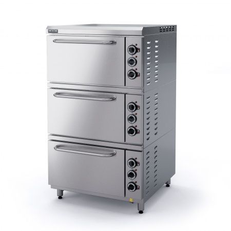 Шкаф жарочный ШЖЭ93, 3 духовки 538х535х290мм из углеродистой стали, 4 уровня направляющих в камере, комплект 3 противня 470х530х30мм из углеродистой стали в каждой жарочной секции, время разогрева жарочного шкафа до 240° - 30мин, диапазон регулирования температуры 20-270°C, раздельная регулировка мощности верхних и нижних ТЭНов; аварийный термостат; корпус: лицевая часть - нержавеющая сталь; разборная подставка, боковые и задние стенки - окрашенный металл; мощность 14.4кВт, напряжение 380в, размеры 840х840х1490мм, масса 195кг. Профессиональный жарочный шкаф для столовой, кафе, ресторана общепита. www.torg-snab.com. Оборудование для столовой,кафе и ресторана. Профессиональное оборудование для общепита, пищевых производств и торговли. Мебель для предприятий общественного питания. Профессиональное прачечное оборудование для гостиниц, детских садов. Промышленное холодильное оборудование для магазинов, складов и кухонь. Производство мебели для общепита на металлическом каркасе, производство школьной ученической мебели и нейтрального кухонного оборудования из нержавеющей стали на производственном комплексе ПКФ ТоргСервисСнаб в Екатеринбурге. Комплексное оснащение оборудованием и мебелью. Поставка,продажа профессионального оборудования для общепита и торговли купить оборудование с наших региональных складов в городе Екатеринбург, Москва, Краснодар, Ростов-на-Дону, Симферополь, Ставрополь, Нижний Новгород, Пятигорск, Чебоксары, Самара, Ярославль, Йошкар-Ола, Волжск, Уфа, Челябинск, Пермь, Тюмень, Омск, Новосибирск, Хабаровск, Владивосток или доставляем транспортными компаниями. ТОРГСЕРВИССНАБ . www.torg-snab.com